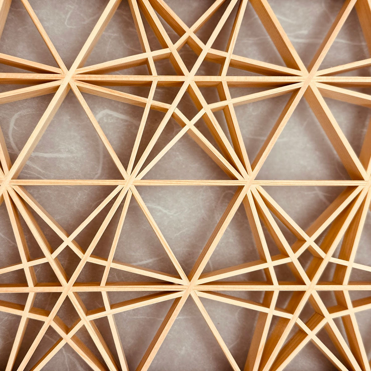 日本特有の国産ひのきで作られた組子パネルを、ひとつひとつ職人の手仕事により丁寧に仕上げました。ひのきの自然な木色と滑らかな質感は決して派手ではなく、控えめながらも確かな存在感を放っています。繊細な組子の模様と木のぬくもりがあなたの空間をさりげなくZen styleに演出し、洗練された落ち着きをもたらしてくれます。 それぞれの柄は自然を反映し、厄除けや願いといった意味も込められています。