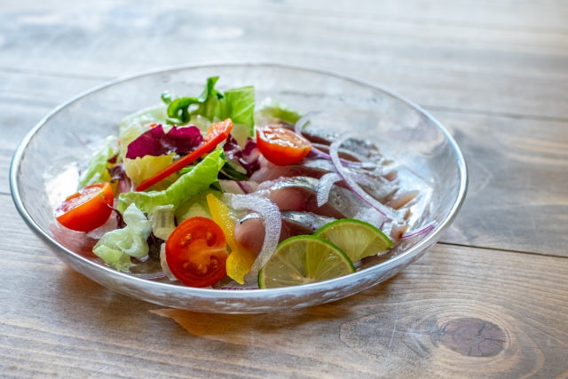 With its crisp yet mellow taste and subtle aroma, kabosu vinegar shines as a simple dressing or combined with olive oil for a marinade. Kabosu’s refreshing quality helps reduce fishiness, while the vinegar's acidity and honey's sweetness enhance the natural flavours of other ingredients. It pairs beautifully with ceviche and salads.