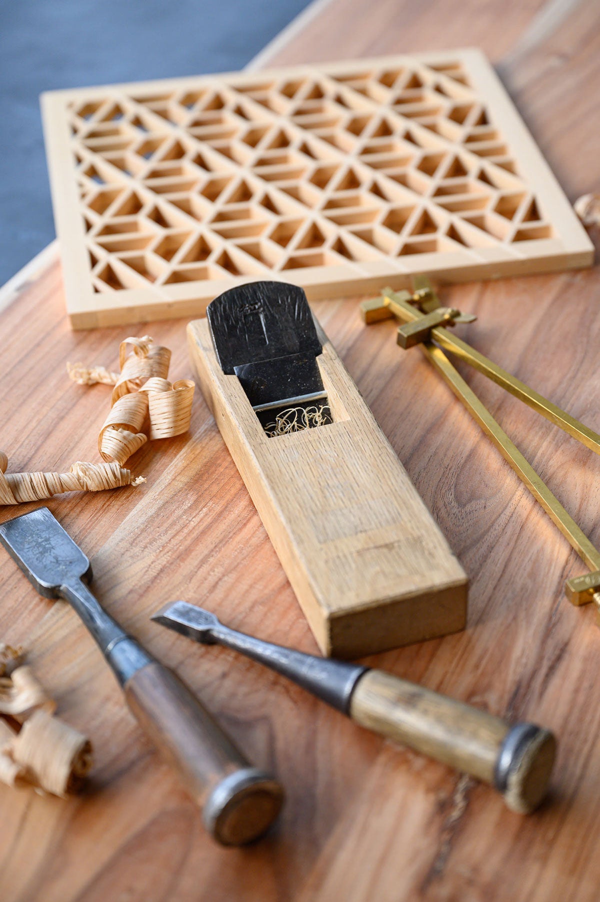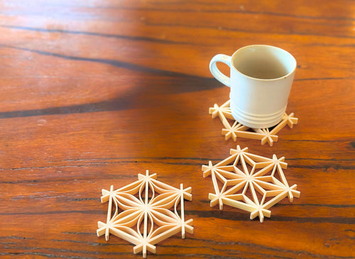 This set of three Kumiko coasters beautifully merges traditional Japanese craftsmanship with artistry. Choose your favourite pattern to add a touch of elegance to your table.