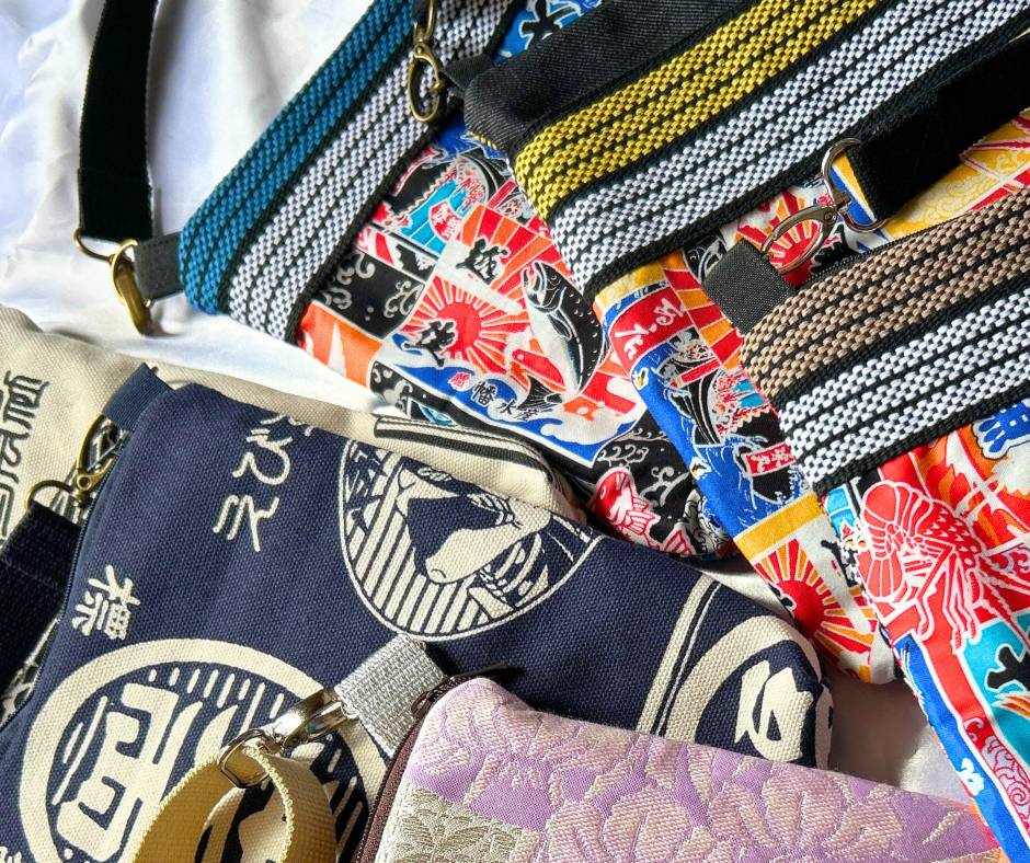 Each piece is meticulously crafted from authentic kimono fabric remnants, resulting in a design that is both eco-friendly and exudes luxury. With their unique colours and expressions, each item is thoughtfully made with attention to detail, allowing individual personalities to shine.